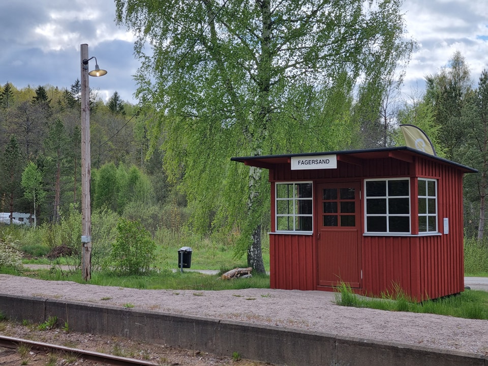 Fagersands hållplats är den ursprungliga hållplatsen, medan Långsjön har tillkommit i modern tid. Fagersand ligger precis vid receptionen till Långsjöns Camping. Infarten till campingen har försetts med ljus- och ljudsignaler och bommar för ökad trafiksäkerhet. Det har också gjort att hastigheten, som tidigare var nedsatt till 30 km/h kunnat höjas.